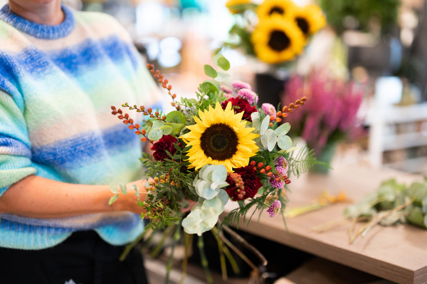 Gunvor er utdannet frisør, men siden 2020 har hun vært blomsterbinder hos oss.